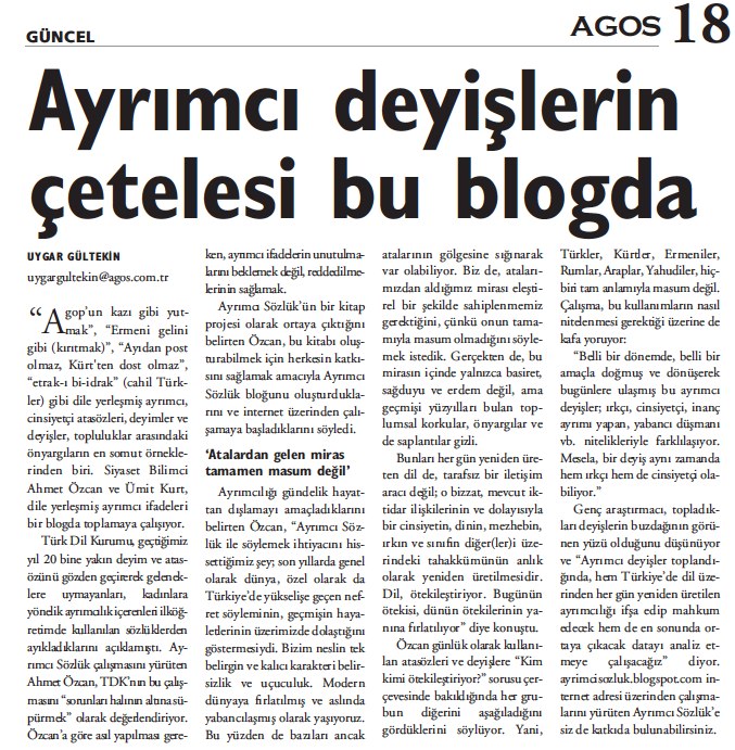 Ayrımcı Sözlük sitesi için burayı tıklayın.