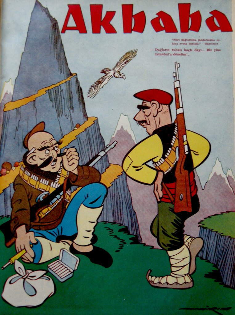 “Gazeteler: ‘Siirt dağında jandarmalar eşkıya avına başladı.’ – ‘Dağların rahatı kaçtı dayı… Biz yine İstanbul’a dönelim!..”