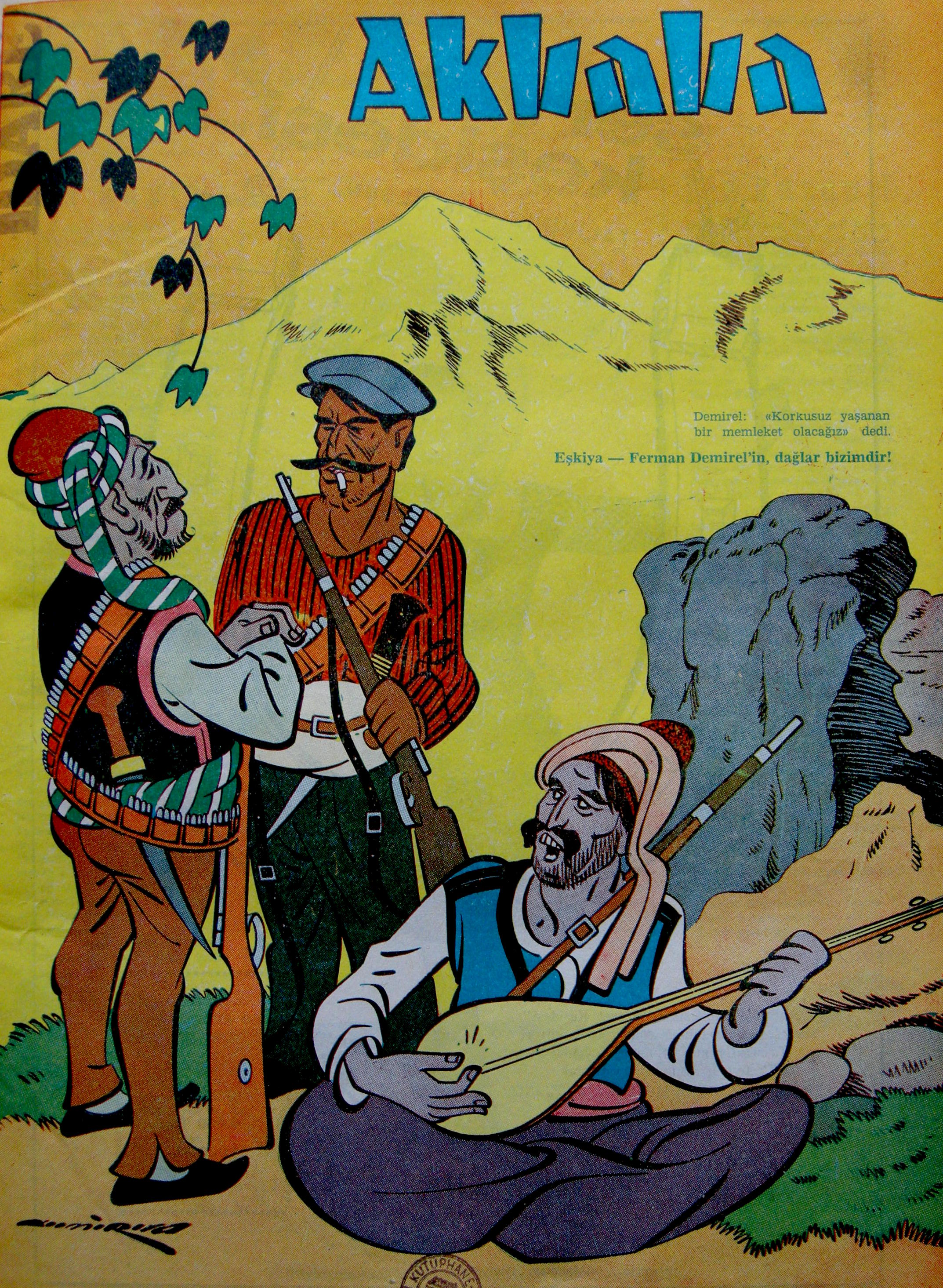 1966 yılında Adalet Partisi Hükümeti’nin eşkıyalığın imhasında gösterdiği yetersizlik, Akbaba dergisinin bir kapağında alaya alınıyordu.