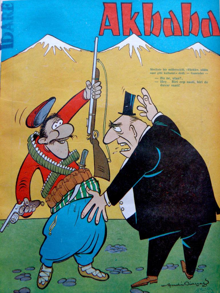 “Gazeteler: Meclis’te bir milletvekili, ‘Türkler, silahı saat gibi kullanır’ dedi. – ‘Bu ne ulan?’ – ‘Heç… Biri cep saati, biri de duvar saati!”