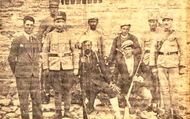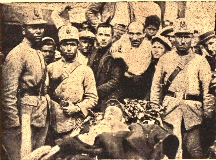 Meşhur Ege eşkıyası Tosyalı Mustafa‘nın cesediyle poz veren askerler