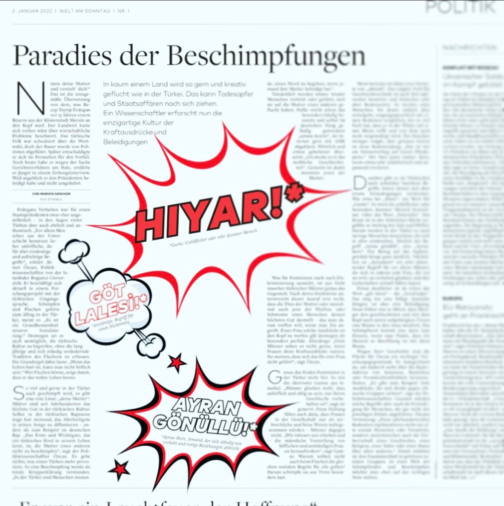 Marion Sendker made an interview with me on the swearing culture in Turkey and then published a German article in Welt on January 8, 2022.