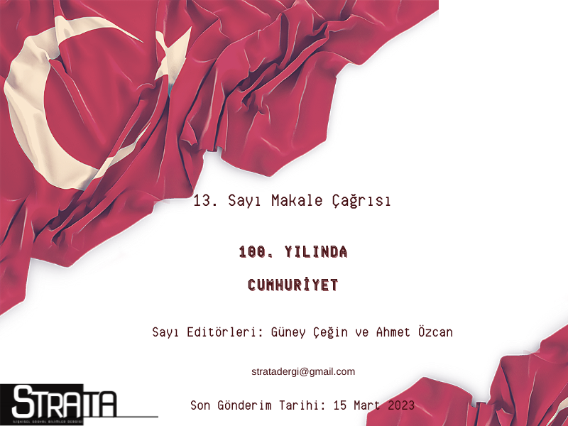 Makale Çağrısı: Strata: İlişkisel Sosyal Bilimler Dergisi, 13. Sayı: “100. Yılında Cumhuriyet”, (der.) Güney Çeğin ve Ahmet Özcan. (Son Teslim Tarihi: 15 Mart 2023)