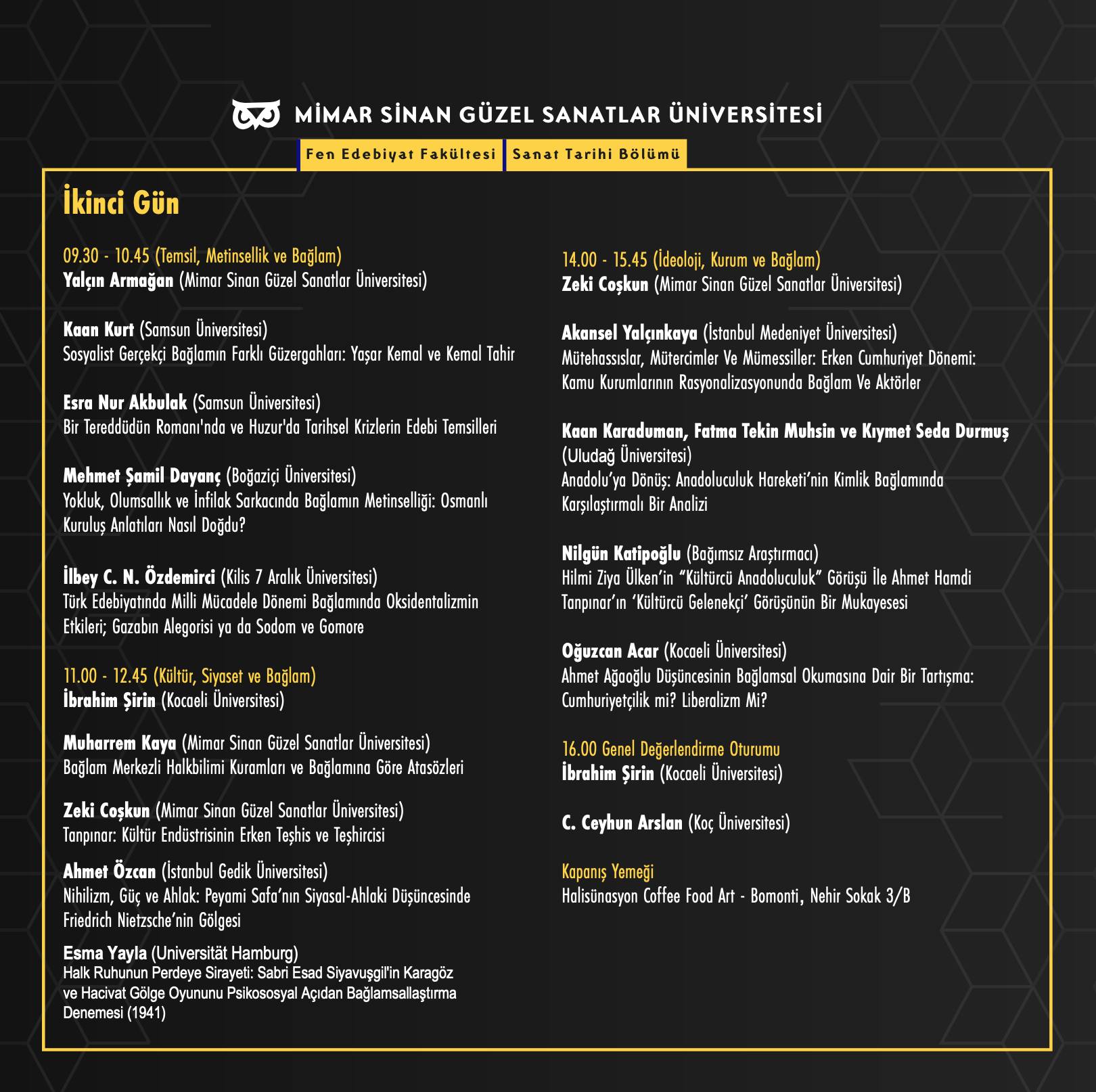 26-27 Ekim tarihlerinde Mimar Sinan Güzel Sanatlar Üniversitesi Bomonti Kampüsü’nde düzenlenecek “Osmanlı’dan Cumhuriyet’e Bağlamsal Düşüncenin Doğuşu (1850-1960)” temalı sempozyumda ben de “Peyami Safa’nın Siyasal-Ahlaki Düşüncesinde Friedrich Nietzsche’nin Gölgesi” adlı çalışmamı sunacağım. Sempozyum programı aşağıdadır.